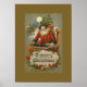 Maravillosa tarjeta vintage de Navidad de Santa con una bolsa llena de regalos y un árbol de Navidad decorado bajando una chimenea de ladrillo mientras sus renos y trineos esperan al próximo poster de arte de reparto.