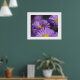 Se muestra al poster con una foto impresa de flores moradas con una abeja. Personalizar este artículo o compra tal cual. Imagen de stock