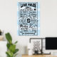 Poster Blue White Lake Rules con fondo azul y blanco y letras negras. Reglas divertidas para su invitado visitando su sitio del lago.