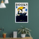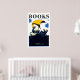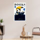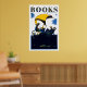 poster que promueve la lectura en 1930. Diseño encantador con padre e hijo a bordo de un barco lleno de libros.