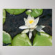 Un bonito nenúfar de agua blanca en plena floración rodeado de colchonetas de lirios. Tan claro que te jurarías que estaban colgados en tu pared en la casa, oficina o dormitorio.