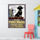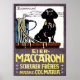 C. 1910 poster de publicidad para Colmaria Maccaroni. El poster retrata a un Dachshund resistiéndose a la necesidad de comer la olla completa de pasta caliente sobre un mostrador de cocina.