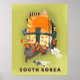 Corea del Sur, poster de mapas ilustrados de arte impreso.