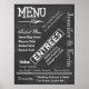 Divertido menú boda de tamaño poster hecho con un aspecto de pizarra gris de carbón oscuro. El texto blanco caprichoso con diferentes tipos de letra le da un toque divertido e informal a la recepción. Personalice el texto con los elementos de menú y agregue más campos de texto personalizando este gran menú para su boda.
