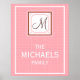 Ya sea que recién estés empezando tu familia, o que hayas estado por generaciones, esto hace de un poster encantador o una obra de arte enmarcada para tu casa. El fondo es un lindo patrón de comprobación rosa y blanco, y las fuentes...bueno, tenemos 100 para elegir, así que juega y diseña tu poster monogramada familiar para que se adapte a tu propia herencia.