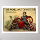 Este es un poster de motocicleta vintage restaurado que presenta "La rueda de la pared automática". Fue diseñado en Inglaterra alrededor de 1910t. Fue una gran sensación en Inglaterra, y fue bien recibida en Estados Unidos pocos años después cuando la Compañía de EE.UU., A.O. Smith, obtuvo los derechos de manufactura. Se trataba de un dispositivo relativamente sencillo que se podía adaptar a la bicicleta, lo que permitía al conductor recorrer 24 km por hora sin cansarse.
