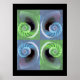 Composición artística de cortes transversales de nautilus en verdes y azules blandos.
