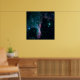 Nebula DG129 - poster que presenta una bocanada de polvo espacial rosa entre dos brillantes estrellas que forman la garra de la constelación Escorpio.