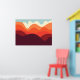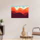 Un diseño de paisaje minimalista audaz en tonos rojos, naranjas, marrones, crema y azul claro