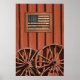 Hermoso poster patriótico en la pared sería una adición encantadora a cualquier hogar. Enmarcada la vieja gloria con las palabras "Tierra de los libres, por los valientes" colgando en el costado del granero de campo con ruedas de vagón .. Hace una hermosa pared colgada en el marco.