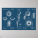 Antiguo, patente vencida de golf de bolas y tee. Dibujos esquemáticos y anotaciones en un poster para una bonita decoración temática de golf. Dibujos técnicos blancos sobre el azul cianográfico para una apariencia de diseño. Versátil y apto para espacios de oficinas, cuevas, decoración de campo, decoración de casa de campo, así como interiores contemporáneos. Vea al poster de patentes del club de golf correspondiente para un par perfecto. Disponible en más esquemas de color. Para el Día del Padre, cumpleaños, jubilación, amantes del golf, buena suerte y más. Y también para los jugadores y los jugadores amantes del golf.