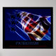 Imagen abstracta de los ángeles azules de la Marina que se esparcen a lo largo de un cielo lleno de bandera. La palabra "patriotismo" y una definición de la palabra.