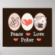Si te encanta jugar a Texas sostenerme o a cinco cartas, te encantará nuestro símbolo de paz, corazón, cartas y fichas de póquer en rosa y marrón oscuro sobre adorables regalos, ropa y camisetas de los jugadores de póquer de novedad. Un lindo regalo para un jugador de torneo de póquer, jugador de póquer en línea o sus amigos de póquer de viernes por la noche.