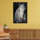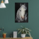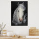poster de pintura de semental blanco. Esta hermosa pintura de un semental blanco es imprescindible para todos los amantes del caballo y de todo lo que sea equino. Esta pintura al óleo sobre lienzo muestra la orgullosa y guapa cabeza de un fuerte y blanco caballo de semental contra un fondo negro, así que parece que se está dirigiendo hacia el espectador.