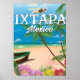 Poster de vacaciones mexicana Ixtapa con una playa mexicana de arena blanca.