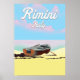 Rimini Italia poster de playa de un hermoso y viejo bote de remo en la famosa playa de arena.