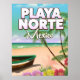 Afiche de viaje de Playa Norte, México con una playa mexicana y un bote de pesca.