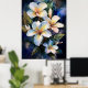 La preciosa y exótica plumería se encuentra en un bonito marco de flores tropicales. Esta obra digital de arte se inspiró en mis jardines tropicales en la isla de Maui. Se creó con una serie de técnicas de acuarela y cepillo seco.