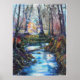 Profundo en el bosque en un día frío a principios de la primavera; un arroyo recorre su curso. La vista parece misteriosa, con la luz demasiado brillante, y una mariposa fría que ha surgido demasiado pronto. Póster,