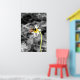Abeja colorida sobre fondo blanco y negro.