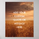 Trae calor e inspiración a tu casa con este poster de campo de atardecer personalizado. Con un campo de trigo dorado al atardecer con pájaros que se extienden por el cielo, este diseño captura la paz y la belleza. Añada su cita favorita, mensaje personal o palabras significativas para crear una pieza de arte única. Disponible en múltiples tamaños y también como descarga instantánea, este poster es perfecto para salas de estar, dormitorios, oficinas, o como un regalo personalizado reflexivo. Con su mezcla de serenidad de la naturaleza y su texto personalizado, se convierte en arte de pared atemporal que hace que cada espacio se sienta especial. Añade tu propio texto para que sea verdaderamente único e inspirador.