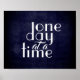 Este inspirador poster de citas tiene una tipografía moderna de texto blanco con un día a la vez sobre el fondo gris oscuro del carbón vegetal para la decoración de arte mural en casa u oficina.