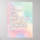 Este poster motivacional está diseñado para inspirar y elevar, motivadora una mentalidad centrada en el crecimiento y la perseverancia. Perfecto para cualquier espacio, sirve como recordatorio diario de creer en ti mismo y seguir adelante. Trae positividad a tu entorno con esta forma atemporal de ánimo.