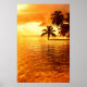 Impresión poster de una palmera horizontal que cuelga sobre el agua del océano pacífico durante la puesta de sol en una isla tropical. La decoración es magnífica.