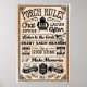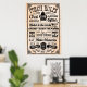 Poster beige y negro con fondo beige acuarela y reglas de diversión para tu huésped y familia sentados en el porche.
