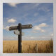 Poster con foto de la señalización de la ruta de acceso a la vía de acceso y campo dorado y cielo azul, Oxfordshire, Inglaterra.