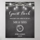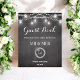 Rótulo de de Boda de Invitado Blanco Negro Poster para boda con String Lights y Mason Jar sobre un rústico fondo de pizarra/pizarra. Utilice la opción de personalizar esta plantilla para cambiar el texto.