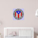 Planeo hacer esto en un gran reloj para mi oficina. petroglifos taínos grabados en piedra alrededor de una bandera puertorriqueña de piedra