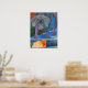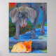 Pintura original Titulada: "Crossing Paths" de Laura Barbosa fue vendida a menos de una hora de la inauguración de la Galería en el Tinicum Art Barn en Erwinna PA. Esta obra de arte está ahora disponible en nuestros productos de zazzle. Una pintura acrílica de un perro de Weimaraner y un gato Naranja Tabby que cruza caminos en un Poster.