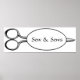 Un hermoso dibujo de un par de tijeras con un oval en el medio. Usted ingresa su propio nombre de tienda o dice dentro del oval. Perfecto para una Tienda de Belleza o para alguien a quien le encanta coser.