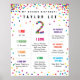 Celebra el hito con el segundo cumpleaños de tu hijo o hija con este colorido poster de confeti arcoiris. Con los libros favoritos de su hijo, alimentos, juguetes, altura, peso, amor y más, seguro que apreciará a este poster en los próximos años. Fácil de editar y luciría como un marco increíble para su fiesta!