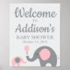 Utilice nuestro cartel de bienvenida con temática de elefantes rosas y grises para dar la bienvenida a sus huéspedes a su ducha de bebé. Puede personalizar fácilmente el nombre, la fecha y el nombre del evento haciendo clic en "Personalizar esta plantilla". Si necesita cambiar el tamaño de la fuente o la ubicación de los cuadros de texto, simplemente haga clic en el botón "Haga clic para más personalizar" para editarlo.