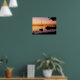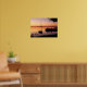 Esta hermosa puesta de sol con vistas a una fotografía del lago sería encantadora en cualquier pared. Los intensos colores naranjas con cuatro sillas y una silueta de velero son perfectos para un regalo o para uno mismo.