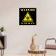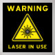 Símbolo de advertencia láser amarillo y negro poster con texto "Advertencia - láser en uso".