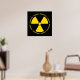 Poster negro con símbolo de radiación amarillo rodeado por "Peligro - Radiación" en texto amarillo repitiendo.