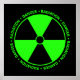Poster negro con el símbolo de la radiación verde rodeado por "Peligro - Radiación" en texto verde repetido.