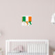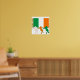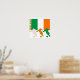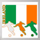 Tres futbolistas juegan frente a la bandera irlandesa. Nombre del país Irlanda está del lado