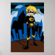 Poster de superhéroe tragante de traje negro