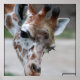 Una jirafa muy linda con cuernos cortos y una cara dulce.