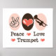 Camisetas de la flauta, papel y más prendas de vestir y mercadería con un símbolo de paz, corazón y trompeta de color rosa y marrón oscuro. Una linda banda de música, un músico de jazz, un instrumento de latón, un experto en música o una sinfonía y un regalo de orquesta para un trompetista y su familia.