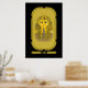 Poster de la máscara funeraria del Rey Tutankhamun sobre diseño de cartouche dorado.