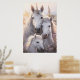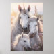 Poster de una majestuosa familia unicornio de pie en medio de un campo de delicadas flores silvestres. La luz solar suave baña la escena, resaltando sus formas fluidas y sus expresiones serenas.