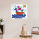 Un ilustracion de viaje en vela con gente en un pequeño barco de vela. Este diseño parece realmente efectivo en este Poster