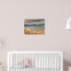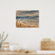 Escena oceánica con veleros a lo lejos y sandpipers en la playa. La pintura impresionista produce una sensación relajante en la orilla. Decoración de playa, recuerdos de verano.