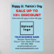 Poster azul claro para el Día de San Patricio que puedes personalizar especificando el porcentaje de descuento, las fechas de venta, cargando el logotipo de tu negocio, escribiendo tu nombre de negocio, dirección, número de teléfono, correo electrónico y sitio web. Personalizar y muéstralo para atraer a más clientes a que compren sus productos o clientes para que les gusten sus servicios. Compruebe la apariencia después de cargar el logotipo y escribir textos. Si la apariencia le resulta agradable, puede realizar su pedido ahora. Si necesita cambiar el tamaño y la posición del logotipo y los textos para que encajen en este poster o en el tamaño y estilo que ha elegido, ajuste la herramienta de diseño. También puede cambiar el color de fondo, el color de fuente y el estilo de fuente en la herramienta de diseño. ¡Feliz Día de San Patricio! Le deseamos la mejor de las suertes, alegría y más ventas de esta fiesta.