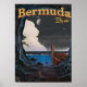 Antiguo poster de vacaciones de Bermudas. Afiche de viaje en la playa de Bermudas. poster de la cueva personalizado.